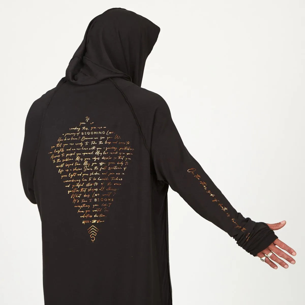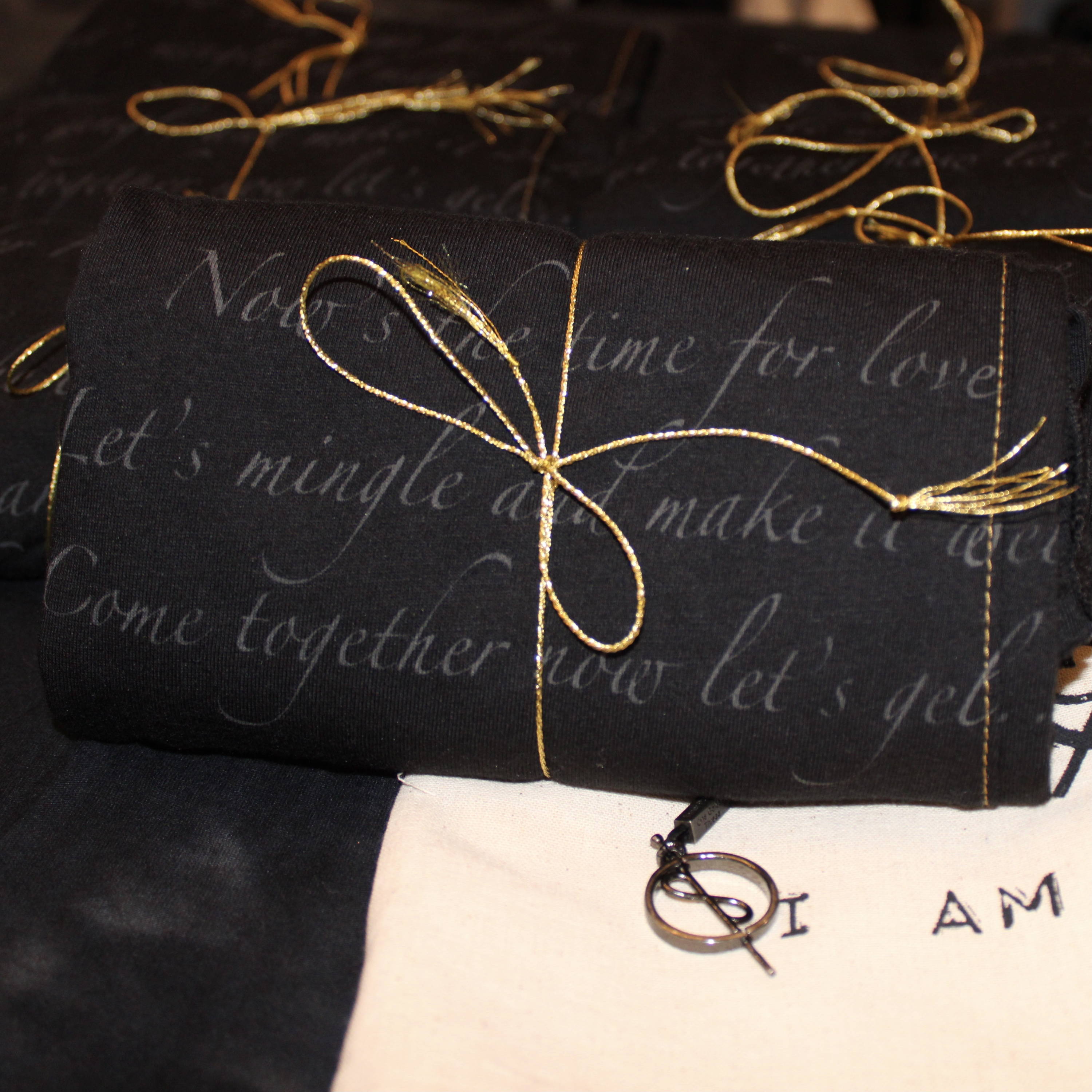 Crafted from our signature Tree Silk—a regeneratively-made, breathable fiber that feels unbelievably soft—each piece is ethically handcrafted, earth-printed with eco-friendly inks, and optionally adorned with our signature golden thread bracelet. Packaged in reusable muslin bags, your co-branded wearables are designed to be treasured long after the moment has passed.